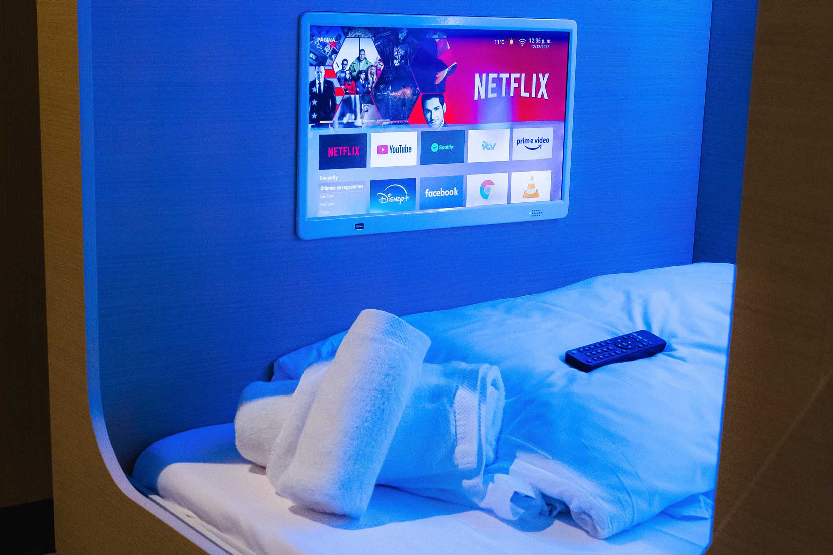 Todas las cápsulas cuentan con conexión directa al aire acondicionado de su habitación, del que podrá regular su caudal desde el interior de su cápsula.